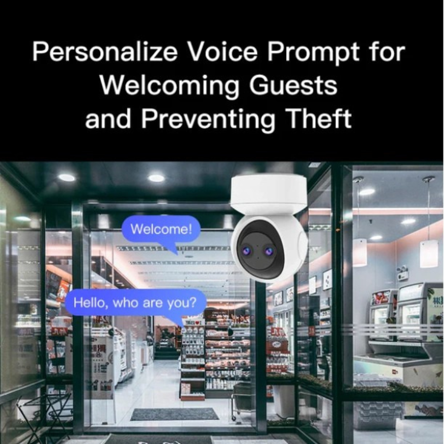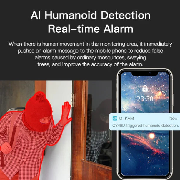 The camera has two built-in lenses, one telephoto and one wide-angle. When a moving person is detected, the security camera can automatically switch between the two shots depending on the distance between the person and the camera to capture every detail.